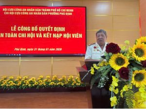 Đại tá Lê Tấn Bửu – Ủy viên Ban Chấp hành Hội Cựu CAND TP. Hồ Chí Minh phát biểu chỉ đạo tại buổi lễ. đồng thời phát biểu chỉ đạo, ghi nhận những kết quả hoạt động của Chi hội trong thời gian qua, đề nghị Chi hội tiếp tục phát huy vai trò, trách nhiệm của hội viên trong tham gia giữ gìn an ninh trật tự tại địa phương.