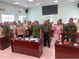 Quang cảnh Lễ chào cờ,công bố Quyết định kiện toàn Ban Chấp hành Chi hội Cựu CAND phường Phú Định và Lễ kết nạp hội viên mới.
