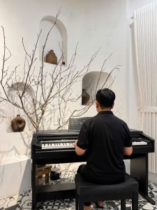 Vào những buổi tối cuối tuần, quán trở nên đặc biệt hơn khi tiếng đàn piano vang lên trong không gian tĩnh lặng. Người nghệ sĩ ngồi bên cây đàn, đôi bàn tay lướt nhẹ trên phím đàn, tạo nên những giai điệu sâu lắng. Đó có thể là những bản nhạc cổ điển quen thuộc, cũng có khi là những bản tình ca bất hủ khiến người nghe chợt lắng lòng.