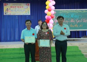 Buổi lễ thêm phần trang trọng với phần trao khen thưởng của UBND tỉnh và UBND xã cho các tập thể, cá nhân có thành tích xuất sắc trong phong trào thi đua năm học 2024 – 2025. Đây là sự ghi nhận xứng đáng, đồng thời là nguồn động viên to lớn để đội ngũ nhà giáo tiếp tục phấn đấu, cống hiến và sáng tạo.