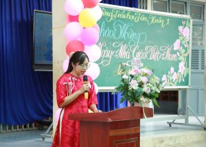 Trong phần phát biểu cảm nghĩ, cô Nguyễn Thị Diễm Hương – giáo viên tiêu biểu của trường – đã bày tỏ niềm tự hào khi được gắn bó với nghề giáo, đồng thời khẳng định sẽ tiếp tục nỗ lực cống hiến, tận tâm dìu dắt học sinh bằng tất cả tâm huyết và trách nhiệm. Đại diện học sinh cũng xúc động gửi lời cảm ơn chân thành đến thầy cô – những người luôn tận tụy, kiên nhẫn và đồng hành cùng các em trên con đường học tập và trưởng thành.