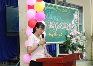 Trong phần phát biểu cảm nghĩ, cô Nguyễn Thị Diễm Hương – giáo viên tiêu biểu của trường – đã bày tỏ niềm tự hào khi được gắn bó với nghề giáo, đồng thời khẳng định sẽ tiếp tục nỗ lực cống hiến, tận tâm dìu dắt học sinh bằng tất cả tâm huyết và trách nhiệm. Đại diện học sinh cũng xúc động gửi lời cảm ơn chân thành đến thầy cô – những người luôn tận tụy, kiên nhẫn và đồng hành cùng các em trên con đường học tập và trưởng thành.