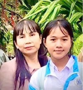 Cháu Y Sê Ka và cô giáo dạy môn tiếng Anh của trường THPT Ngô Mây